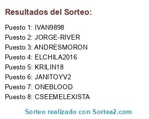 Lista de participantes: IVAN9898, ANDRESMORON, JORGE-RIVER, JANITOYV2, ONEBLOOD, ELCHILA2016, KRILIN18, CSEEMELEXISTA.