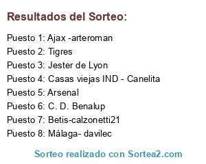 Lista de participantes: Málaga- davilec, Ajax -arteroman, Betis-calzonetti21, Casas viejas IND - Canelita, C. D. Benalup, Arsenal, Jester de Lyon, Tigres.