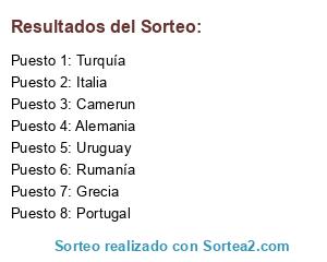 Lista de participantes: Portugal, Italia, Camerun, Rumanía, Grecia, Alemania, Uruguay, Turquía.