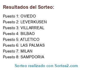 Lista de participantes: SAMPDORIA, LEVERKUSEN, OVIEDO, VILLARREAL, MILAN, BILBAO, ATLETICO, LAS PALMAS.