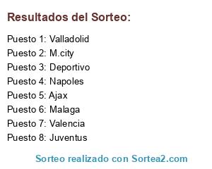 Lista de participantes: Valencia, Ajax, Juventus, Malaga, M.city, Napoles, Deportivo, Valladolid.