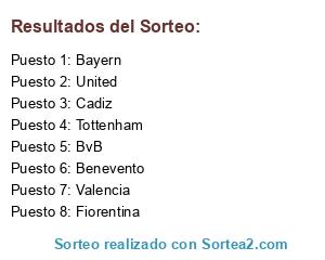 Lista de participantes: United, Benevento, Cadiz, BvB, Tottenham, Bayern, Fiorentina, Valencia.