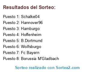 Lista de participantes: Fc Bayern, Hamburgo, Hannover96, B.Dortmund, Hoffenheim, Wolfsburgo, Schalke04, Borussia M'Gladbach.
