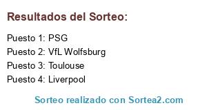 Lista de participantes: PSG, Toulouse, VfL Wolfsburg, Liverpool.