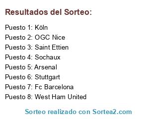 Lista de participantes: Arsenal, West Ham United, Stuttgart, Köln, Saint Ettien, Fc Barcelona, Sochaux, OGC Nice.