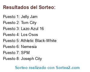 Lista de participantes: Tom City, Joseph City, Nemesia, Lazo Azul 16, SPM, Los Osos, Jelly Jam, Athletic Black-White.