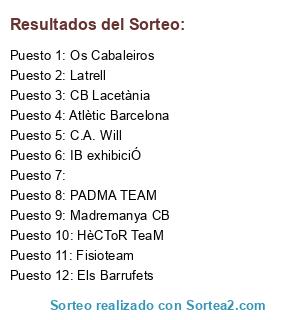 Lista de participantes: HèCToR TeaM, Els Barrufets, Madremanya CB, Latrell, IB exhibiciÓ, PADMA TEAM, Os Cabaleiros, CB Lacetània, C.A. Will, Atlètic Barcelona, geieg, Fisioteam, .
