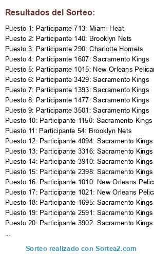 - Puesto 6: Participante 3429: Sacramento Kings