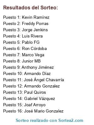 Lista de participantes: Anthony Jiménez, Armando Díaz, Armando Gonzalez, Freddy Porras, Gabriel Vázquez, Joaf Arroyo, Jorge Jenkins, José Ángel Chavarría, José Mario Gonzalez, Junior MB, Kevin Ramírez, Luis Rivera, Marco Vega, Pablo FG, Paul Quiros, Ron Córdoba.