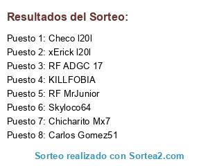 Lista de participantes: Skyloco64, RF MrJunior, Carlos Gomez51, Checo l20l, KILLFOBIA, xErick l20l, Chicharito Mx7, RF ADGC 17.