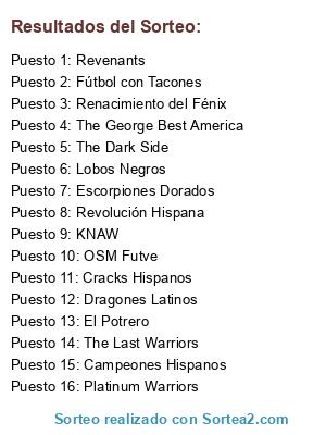 Lista de participantes: Racing, Villarreal, Mallorca, Chelsea, Dortmund, Leverkusen, Albacete, Atm, Aston villa, Sporting, Oviedo, Burgos, Cultural, Pohang, Barsa, United.
