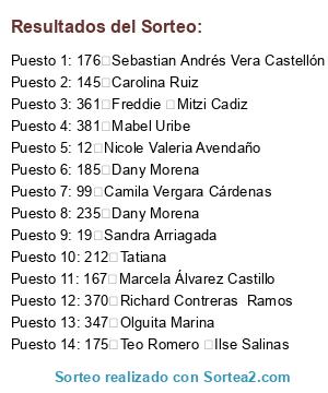 Resultados del sorteo: