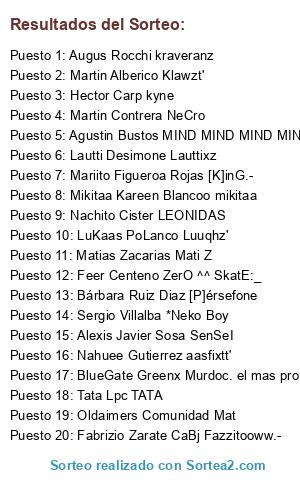 Feer Centeno ZerO ^^ SkatE:_, LuKaas PoLanco Luuqhz', Joako Combina joaquiN', Oviedo JôÄn ">:3", Danniel Valor L u x o r, Jesus Baez benQ, Ignacio Gonzalez D3F4UL7_xD, Julian Figueroa Z1ON^, MeeLina BeLén *Neko Girl~, Alan Palmieri fiNET' tu uashen again , Agus Sampayo t3rr3c4bio, Agustin Jesus Martinez KRAToS, Tata Lpc TATA, Damian Bz ;g0tzze^, Ivan Blanco El moko pa', Rodoo Solano ReVenGe, Ezequiel Fernandez EzeWow x_o :B, Mee Lúù González MeeLuu, Nachito Cister LEONIDAS, Angel Fofre SuPrEmE, Franco Salazar kUff s2, Nicolas Manzanedo LyoN;, Aguustin Lezcanoo Bugutu^, Cano Juan Nexo TU PAPA JOSE JAJAJA, Alë Jimmenez J4ndru', Niko Estrada eL Craack' 3p!, Mati Villaverde ma7i 70j374, Agustin ssankk, Abel Pissano AbL, Melany Priscila Genova Shynna XD!!!, Alejandro Miller |panzer[1].[6]|, Nicolas Gimenez Mind-bending, Braian Baez Braian, Jose Maria Rusch ChicoMilk, Agus Juarez TONTON QUIERE CHICLON, Tomy Luna cArn