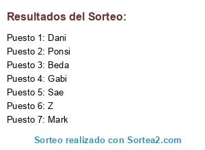 Lista de participantes: Mark, Z, Ponsi, Sae, Dani, Gabi, Beda.