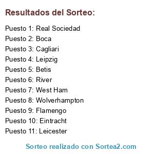Lista de participantes: Wolverhampton, Leipzig, Boca, West Ham, River, Eintracht, Real Sociedad, Betis, Cagliari, Flamengo, Leicester.