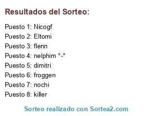 Lista de participantes: Eltomi, Daft, Nicogf, killer, nochi, flenn, dimitri, nelphim °-°, froggen.