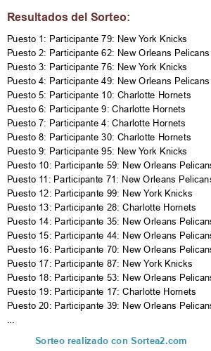 - Puesto 16: Participante 70: New Orleans Pelicans