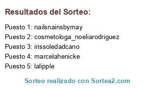 Lista de participantes: lalipple , pato_castro_gonzález , sg_peluqueria , irissoledadcano , lilian.galvan , marcelahenicke , cosmetologa_noeliarodriguez , nailsnainsbymay , maquillajeasp.