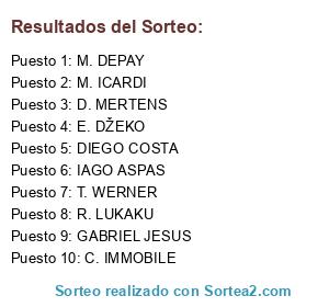 Lista de participantes: E. DŽEKO, M. ICARDI, C. IMMOBILE, DIEGO COSTA, GABRIEL JESUS, M. DEPAY, T. WERNER, IAGO ASPAS, R. LUKAKU, D. MERTENS.