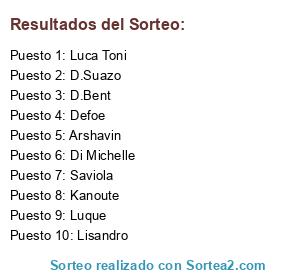 Lista de participantes: Defoe, Saviola, D.Suazo, Luca Toni, Arshavin, Lisandro, Luque, D.Bent, Di Michelle, Kanoute.