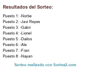 Lista de participantes: -Fran, -Ale, -Dailos, -Gabri, -Lionel, -Javi Reyes, -Nayan, -Norbe.