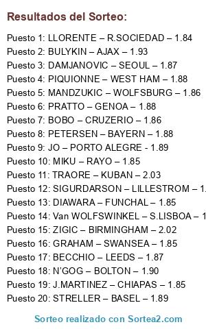 - Puesto 1: LLORENTE – R.SOCIEDAD – 1.84