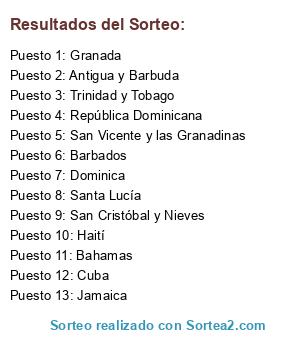 Lista de participantes: Antigua y Barbuda, Bahamas, Barbados, Cuba, Dominica, Granada, Haití, Jamaica, República Dominicana, San Cristóbal y Nieves, San Vicente y las Granadinas, Santa Lucía, Trinidad y Tobago.