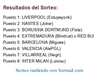 Lista de participantes: NANTES (Joker), LIVERPOOL (Estupeyonk), BORUSSIA DORTMUND (Fista), INTER MILAN (Luisixu), VILLARREAL (Negri), EXTREMADURA (Blindcat) o RED BULL LEIPZIG (Toni), BARCELONA (Miguee), VALENCIA (AlePGL).