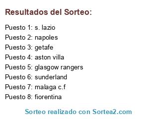 Lista de participantes: fiorentina, s. lazio, malaga c.f, napoles, sunderland, aston villa, glasgow rangers, getafe.
