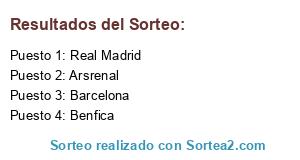 Lista de participantes: Real Madrid, Arsrenal, Barcelona, Benfica.