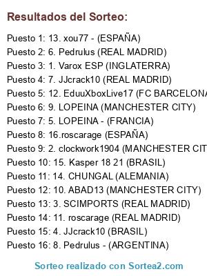 Lista de participantes: x iReviival Fox, AaronRJ24, Kilianeltete, Varo l7l, Juanfran333, VOLT3R3T4, xx HANTRAX xx, FerStar96, Jorchebopa, l5l Zidane 10, xGalloso, ZzMayuAlexiszZ, JoseGranada24.