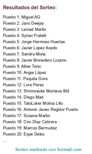 Lista de participantes: Jesús Gasset, Shinnosuke Montava Bld, Carlos Durango, Raoul Navarro Garcia, TatoLoker Molina Lillo, Sergio Gonzalez Losada, Miguel AG, Goretti Garcia Iturraspe, Diego Mad, Lore Perez, Susana Martin, Marcos Bermudez, Ed Doble De, María José Llanos Acero, Angie López, Jorge Hermoso Huertas, Mario Diaz Cabo, Nerea Mateo, Sylver Fratelli, Javier Lopez Acedo, Sandra Mixta, Javo Deejay, Javier Monedero Lozano, Alber Tonic, Jess Blackbird, Ciro Díaz Cabrera, Leinad Martin, Fuencisla Talens, Antonio Javier Regidor Puerto, Samuel Hermoso Huertas, Espe Delso, Juan José García, Sol Martin, Paquita Gore.