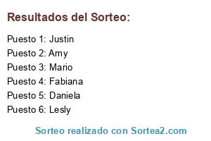 Lista de participantes: Fabiana, Daniela, Amy, Justin, Mario, Lesly.