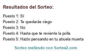 Lista de participantes: Sí, No, Te quedarás ciego, Hasta que te reviente la polla, Hazlo pensando en tu abuela muerta, .