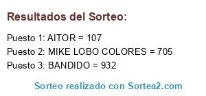 Lista de participantes: ALEQUIN = 281, BANDIDO = 932, JUSE = 28, MIKE LOBO COLORES = 705, AITOR = 107.