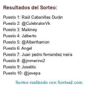Lista de participantes: Totum, @Virimar, @ivanhuertas, @Juanforever, @ultra526, Perryma81, @grasuxxl, @nahnahara, Xavi, Julio Duarte, danielulfe, Machete Mata, FERMINEITORR, dplorca, Diego L, L C, Emilio, @Rubendgl, hopaloncasidi, alvarogp23, Roscachapa, @Ignaciomartin, Manuel Muñoz, @reni6831, @Hyltiman, @falkenvlc, Ángel Santos, kainruben, @vmonroig, Guille, Juan Collado, @Deadpool87, Gaxupin, @pedrolop, @tostaito, Satelitcam, Xema17, @Alberthamon, Alias: Zamorano315, @Pablete84, Joaquin, Amate, @txitxo0, Francisco Vela, @Enklenke, CHernansanz, @djmarko, Fernando, @Alex_b_n, Rubén Porcar Vicente, @FuriusP, elTorres, @Guaje_792, Cramgi, @lexter82, Pedro Llorente, jmvitar, Makiney, Francisco, Luis, Raizen, D_ramos, Marcos Mecos, Juan Manuel Díaz Martin, Dj elbergud, Nano, Maruxa, Sapooo1, vankdj, chop1, Jose Antonio Carret, Rubén, @manuindaclub, Robert Jodomo, noremlass, @folgui, Blashei, Haitone, @Maneiro10, carmenfn, Alf Ber, @C4R0L1N4, @alfito33, Mch cs, Mariano Gomez, ilosada, Jalberto, @Dpascm, Rafa Reina, Jya10, Nagapij, Juaniho, @picabielas, @AngelitoF1, @mikelzaldu, @Al150786, @quemasquisieras, @Moni1980, Kasbo, abpalau, vw192s, Angel, Peiopazo, @baparapo26, Puma, @V3R0N4, @VictorCorchero, Javier Pantoja, @javive78, Troi, @Betislian, saulsr90, @Rastyman, @reychango, 4dria84, jvf87, @onekarr, @adrisepu, @raul_toribio, RauX, Felix, Jose O., @juanan7676, mcalve, Diejeitor123, nestul, Miguelflust, @buzzwoody, @josepresi, Sergio3pa, Xisco Calafell Pastor alias checo222, @CulebratorVk, 548U, @Gerfus, JoeyJr, @javimarinakis, Eduard Lleset, Marin, Davu25, barbas25, @llroura, Kapi, @xsottax, @julenxu, @jaguar402, @Joselpb, edugomez_90, joselito2018, @zulux77, @catapeixe, Liniof, Alsurantenas, atubau, Fran ( cloudfrn ), Carru, @Autodefinidos, Enigmaaaaaa, Ocelot8, MR8MG, @atonito34, Sias_siasarrr1, Maikcg, Justo daniel, Quique, @josemibunbu, @DoMoFra, Eli, @pereanchuelo, @Pedro1003, themanquer, Joluex, Iceman, Juan Manuel, Jorge Gimeno, Raúl Cabanillas Durán, Barbera9, danialbert, CUS, @Zaqueroso, antloz, Juanma Garrido, António Cruz, @Alvaaroje7, Bianditz, @txemaxx, Gabriel Palomo Cabrera, @jordiccjj, @juanluisten, Chupiski, Jocare, Eduardo, Jander888, torricha, @barcar1, aljau, Bentrock, @albertojsn, Moises, @AsTuR75, Lamiabarba, dmonalvo, Superdei, romanroan, @LunaticoGz, @DebydS, José Carlos Iglesias, @sarrac3n0, @fmolinabri, asturjad, Jose Guirado Perez, Kike pérez, Juan pedro fernandez neira, @kronos78, IsmaelBBB, galegogeeek, @Carmenyona, 〽️arch!, Ivnhdlg, @FrancisMalaka, Ismapro, Miguel, EA4GNQ, nikosillo, Jmdm8190, @Iouwi, gonchy77, @jmmerino2, ilicitano, @Gonzys, Sanchi, @Andradasjym, Joselito, Donato, Indisvq, Luismirubio, @r0i11, @Melli770, Pablovargan, @jcgc09, Jacobo Custodio, Victor Padilla, @Raycoesp, JonathanRo, VenBej, Davidfyder, Angel Cj, Jalarab, Axier, @elfervit, Chuta23, @faneca84, @Guripa83, Kike iborra, Rodalex14, Rebeldb, Xerachjo, Javi3r26, Gerardo22, tonimonton, @alesaragon, Joseba I, @largo14, @Jarassmann, @jackzerox, manza, @Don_Qcho, Juan angel, Raul, Toroesp, @akom666, @xukumal, Jaime Acuña, @chacaleu, Cuñao, @arbilac, @Helmant, Cardenas78, @yoooo, Soothered, Andrés Lobo, @katigas, Gelucky, Santiago Q, Elmdor, @kikearr, SDJ, Superman ball, Eldelmazo, @Juanlu_vg, Alfonso3333, Miguel V., a4nt0ni0, Carlos Hnz, Puncheitor, Benjamiiiiiin, Tonio, Toni, tricomma, Lacbilbao, lerelelee, ToninoGC, RG, Carlosnye, @carlos15705, Juanjo, cabaseira, Irene, Nuse, @deluxemax, Juan Carlos, Calivan, Fernando 644417431, Jaume Bonastre, Antonio, Luis M, Xtr3meTM, Valverde, @Jesussilva, feli_rm, @AlexLP1, Carlos de la Calle, @Heissenberg_33, Pepe Cameo, Javier González, @SpeedSnnop, FMdeanto, @josealcivar97, @EduardoPando, Ale, sejis, Alberto Sanchez, Rafa España, Rubira, @pialarcia, @nbertop, jowetox, Andresiko, Fran-_-, Redef86, @amorcastuo, ivnko, @bouzinhas, An6e1, @aruizpal, Ricardo, @jxilf, @jovepa, Rubirpg, @davidp7, @lozanoski5, Blackdub, franR Lazaro, @RayoBcn, Jomagomo, David, @JoseValentin76, Mikdo, Bomberto, Jhd, Tinako, Dvd, @Cristobal21s, AnArKi_FrOsT, Rufito73, Alejandro Franco, @minteguiait, Aitor Fdez, Hectoruelo, @Camu101, Kike_0956, Tormentas, Tatin36, @SaulRodriguez, @juanceballos, Fis2, @Joanforeveralone, Rflorble, Antoniofr, Jose Manuel, Pieter, Panolius, @elpeter, @Jawis, Oscar Sánchez, @AspirinaXxX, @Patisita, superjoselp, Pare123321, DiegoB, Avendanyo, Elmelenas69, JoanMT.