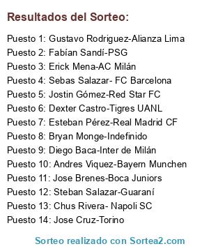 Lista de participantes: Esteban Pérez-Real Madrid CF, Jose Cruz-Torino, Andres Viquez-Bayern Munchen, Jose Brenes-Boca Juniors, Erick Mena-AC Milán, Chus Rivera- Napoli SC, Dexter Castro-Tigres UANL, Steban Salazar-Guaraní, Gustavo Rodriguez-Alianza Lima, Sebas Salazar- FC Barcelona, Diego Baca-Inter de Milán, Jostin Gómez-Red Star FC, Bryan Monge-Indefinido, Fabían Sandí-PSG.