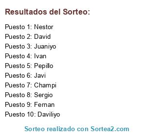 Lista de participantes: Champi, Fernan, Daviliyo, Nestor, Sergio, Pepillo, Juaniyo, David, Javi, Ivan.