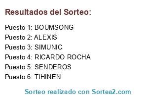 Lista de participantes: RICARDO ROCHA, SENDEROS, SIMUNIC, TIHINEN, ALEXIS, BOUMSONG.