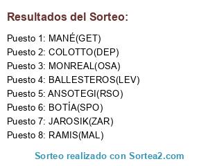 Lista de participantes: RAMIS(MAL), BALLESTEROS(LEV), ANSOTEGI(RSO), MONREAL(OSA), BOTÍA(SPO), COLOTTO(DEP), MANÉ(GET), JAROSIK(ZAR).