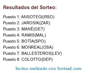 Lista de participantes: RAMIS(MAL), BALLESTEROS(LEV), ANSOTEGI(RSO), MONREAL(OSA), BOTÍA(SPO), COLOTTO(DEP), MANÉ(GET), JAROSIK(ZAR).