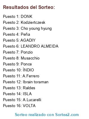 Lista de participantes: Kodziertczesk, Ibrain toraman, Raldes, A.Lucarelli, Musacchio, Peña, Ponzio, Ponce, Cho young hyung, A.Ferrero, DONK, ÍNDIO, LEANDRO ALMEIDA, VOLTA, ISLA, AGADIY.