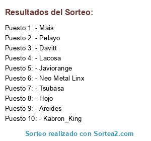 Lista de participantes: - Areides, - Pelayo, - Davitt, - Neo Metal Linx, - Kabron_King, - Lacosa, - Tsubasa, - Mais, - Hojo, - Javiorange.