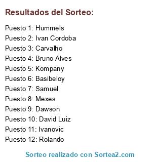 Lista de participantes: Kompany, Dawson, Basibeloy, Bruno Alves, Hummels, Ivanovic, Ivan Cordoba, Mexes, David Luiz, Rolando, Carvalho, Samuel.