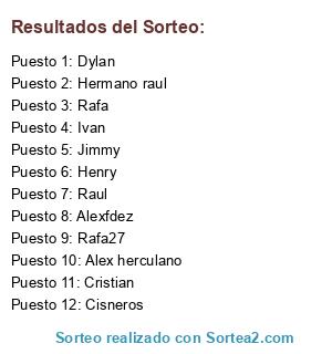 Lista de participantes: Jimmy, Raul, Dylan, Hermano raul, Rafa, Rafa27, Henry, Alex herculano, Alexfdez, Cisneros, Cristian, Ivan.