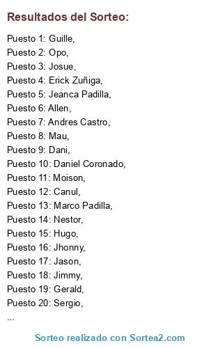 Resultados del sorteo: