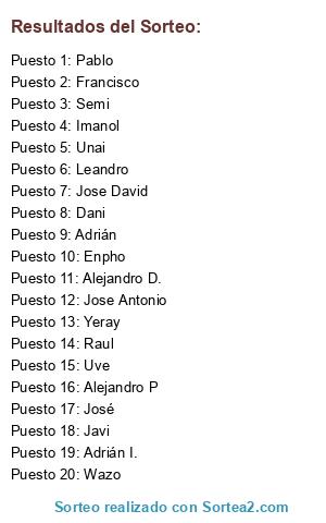 Lista de participantes: Alejandro D., Imanol, Alejandro P, Pablo, José, Jose David, Unai, Yeray, Adrián, Semi, Leandro, Enpho, Javi, Francisco, Raul, Adrián I., Jose Antonio, Wazo, Uve, Dani.