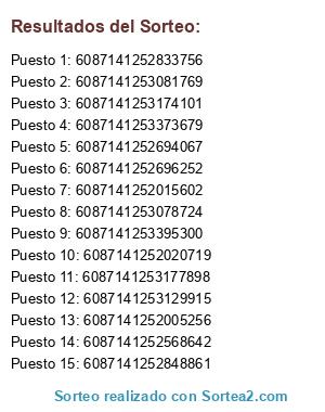 Resultados del sorteo:
