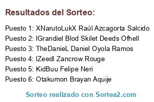 Lista de participantes: lZeedl Zancrow Rouge , KidBuu Felipe Neri, lGrandiel Blod Skilet Deeds Ofhell, TheDanieL Daniel Oyola Ramos, Otakumon Brayan Aquije, XNarutoLukX Raúl Azcagorta Salcido.