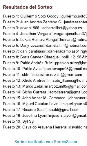 Lista de participantes: @hook.ask, @adela.maturanar, @adevoto611, @adriana51paredes, @agustinlagos1, @agustino1998, @alan_zgraff, @alb.bustamante.john, @ibarbearaya.b, @mavergara19, @alejandro.moyav, @ale22ulloa, @alvaro.munoz.sepulveda, @alvaroregal, Amaru Huerta Oyarzun, @amberphilp, @anahi.anahi.sj, @andrea_mohr, @correotop4, @guataco85, @ajgardeweg, @australflyfishing, @andres.molina03, @andrees.salvo, @andy.yosue.-, @andres.ceese, @anibalpfdz, @anakarina.araya, @antomgrez, @antonia.azconam, @antonia.ariasparada, @antonia007montt, @Antomgrez, @Aovalle6, @arayap.juan, @benjaminpirata, @arturo.inostroza, @acbarroilhet, @bastianpozo8, @barbarasaavedrav, @Balter.rojasp, @balteer, @felipewagner, @bbarrar.15102011, @bastian.campos.m, @trizaltermatt, @belen.cia, @benj4_bkn, @biturrietar, @berbelen14, @miguel.z.o, @acrocarrera, @bolli_12_98, @macaco1806, @falkon_scorpion, @c.munizaga.ledezma, @ca.gonzalezsep, @jozhiitah_sweet, @camila.concha.elgart, @elcamalo, @ka_milo1, @carlos_14_dlc, @carlosf.rojasu, @velizeballos, @carlos.vial, @carmenmofre, @carolinagopad, @cuncuna25, @carito.rt9, @ps.carozamora, Cata Sepúlveda, @cata.ok, @kleptor69, @cesargonza804, @yendegaia2016, @chrisgutierrezv, @christopher.marquizani, @c.aguilera.geisse, @claudyt_93, @anlly.abril, @metal.x.kyo, @clausmozu, @claudiodelgadonunez, @cmutorres, @constanzaoyarcediaz, @constanzasalas34, @cooterojas, @marijo_50, @c_laplata, @chatito2008, @carcosencia, @cristian.ig, @cristian.hernandezru, @camiddleton, Cristián Vergara, @cristhy.asdfgh, @creitze, @dacorvalan, @dafyta, @dairobenjumea, @daniellacambiaso17, @danielaguirre93, @daniiell.andree, Daniel Hernández Ardura, @dab_1998, @yoamoamimoss, @mj_rv85, @larosarojas, @danielleherrera.vet, Danilo Arriagada Proboste, @dan.gutierrezm, @dnyway0704, @daniela.l.m, @ncollao, @quietandrive, @davidpm.rocco, @daviidcv92, @d.jblancv, @djaviles, @diego_x_zarate, @morasalas94, @eldiego21, @ddiaz87, @francisco.araya.carmona, @camchile, @dome_bernetti, Dort Dieupanou, @perrita.k, @edix14, @elopez_, @desertbikes, @emilioibarra10, @eabugosch, @enriquechgodoy, @gonzalezarellanoerick, @camuflaje_2004, @efica, @esteban_r_93, @fan_ni.8, @estefanyvillegas, @exequielira, @fasilvafigueroa, @felipe.ortegas, @fdaniel.1480, @felipe141905, @felipe.revecoespinoza, @neogeto, @felipe.duarte.acevedo, @felipe, @pipegol_97, @felipexz_33, @fernahhj, @fernando.riveros, @fernando.leon.80, @ffenzo, @emo_dx2008, @fafa_gb, Fran Ruiz, @fran_cox7, @fcoserob, @franchescovr, @pancha_coffre, @dalsantofran, @francisco.araya.e, @fjbarbac, @fcofre_, @osmoc27, @el_panxhoh_2011, @frandread, @cuinsi360, @franturion, @fredy.ortega, @vle.nngel, @xzados4, @gabriel_henriquez_f, @gabrich_x_hardy, @gsvg, @tamiss.poblete, @gabrielalbertomartinez85, @camilo.g4, @gciuffardi, @gerardo_v_3, @andres.gjr, @gersarabi, @ghiribarren, Gilary Leiva, Gilda Cortes Arce, @gilda.echeverria, @gineralda, @gisellegutierrezsilva, @panchagomezp, @g.salazar.aburto, @gonzalo.huenchupan, @gtrejoha, @guillermo.soto95, @neggroonfire, @h_h_teitor_h_h, @hhrclota, @hernan.lopez.b, @principe.saiid, @hjfl80, @homeronovoa, @enrique_21_agro, @hugo.torresnavarro, @ignaciobrusi, @nachofernandez94, @jignacio363, @iagq0206, @imartinezechenique, @black-cover, @inaki.irisarri, @irlanda.mora.rosales, @israel.climbing99, @issaprofe, @italosecchilagos, @jaime.pulido89, @jairo_baez001, @jmoyano772, @boba_97, @lincexy, @javi.aav, @javi.munita96, @japiob, @javindomita, @jeanfrancocc91, @jesumejiasvega, @jesu.ing, @novoa.joab, @joacogutie, @jmadina.di, @joaco.sandoval.melo, @joha1116, @kjcc9999, @johnanner.mc, @jhon_ac93, @vergarajonathan37, @jsalgado300, @jorjinval, @pirot_backstab, @jorge.fabres, @jorgelealj, @tresgraff, @jabulnes, @jose_antonio214, @jdcruzba, @jhurtado, @joseph_mercury10, @giralt.jose, @jsmontt, @patocordero.28, @josejjrojas, @josefaandre, @kottepitta.vila, @cote_caram, @jose.emerson, @josehudson, @mjosefinalyon, @josefinapuelmav, @josefamoya7, @jotapenavarro, @jandreszenteno, @juartef, @juan-veneno03, @jn.carlos017, @jmcast-79, @g_harries, @juan.rebolledo09, Juan Pablo Arriaza, @rinzo_j.p, @stevenvillagramontoggia, @k.rodriguez.fibla, @kaari.rozas, @karenpinzonramirez, @arbak_18, @katherinerl14, @katherine.valdes.d, @kelly.vilches.vera, @kevinmancillasoto99, @z.molina.kimberly, Kirt Guggisberg, @kurtpk771, @lucesrosas, @lauracarolina992, @leomedina1810, @leon.bg86, @leonohba, @reeb.erom, @leyla17_59, @linda.leal, @cara-angel1998, @loreto.jimenez, @pelaomanu_0721, @lucianoguevara1193, Luciano Stefano Dossi, @adrianzon_8_, @lucho_18_albo, @redcover, @dheco_07, @luis.sanhuezap1984, @elx_chure, @lukas__sk8, @lreinarz, @makita-dancehall, @maca.mandiola, @manuelagabina28, @callamponk, @manuel_rapel_13, @manuelot_, Manuel Jesús, @manuel_94allende, @a.palacioslobos, @muiturriaga, @marciamaraboli, @marcial.feris2294, @marcozuin85, @marquitos.araya, @mimi_nuesecita, @m.cueva.orbe, @carcamokreft99, @jesualamos, @zopet, @la_pachiitah, @pachisepulveda, @paci.sepulveda, @mariajosegiaier, @marianabrice.c, @chi_kemxs, @marina_solise, @mveloso03, @Mario.florescontador, Mart Cesar, @martin_xrx, Martin Gardeweg Jury, @batgang, @icomsantiago, @matias.carrera, @matias.arce, @matias_pokemon_14, @mflorenzano, @matias_triada, @matias.-_, Matias Rojas, @toledogaldamesmatias4, @matias.traro, @funciotraining, @n.mauret, @mbasualto, @geo_444rmgg, @mauro_the_one, @leon, @eduardo.mauriciosr, @maxfranke1, @miguel_del_genero, @miguelignacio024, @miguelpachecov, Miguelina Guerrero Jerez, @garcia.emiliano, @mysusita, @nacho011196, @natty_npr, @ndca20, @nataliapalominos, @natanataliatalia, @masdenelo, @nmunoz, @nicolasfriedemann, @nico.madina, @nicolasnavarrogarrido, @mago_de_oz_536, @nicolasvarela4, @nikol.olate, @lindisima_mimi_67, @el_lalo, @leyton.sepulveda, @orlando.prevencion, @oscarmjar, @oosoriov, @osvaldo.naxo, @pablo.a.ms, @ppabloo.ruizz, @pablochapo08, @pablo.branchi.mickman, @pablo.cortes, @pcruzm, @pablomore17bkn, @pablo.pc.verdugo, @lablackpenaglia, @pamela.sv, @ma.fca.guev